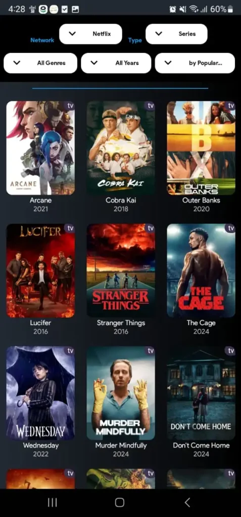The app is easy to use, with filters that help you find your preferred content. You can filter by genre, network, year, and trending content. You can also use the search icon to find specific content.